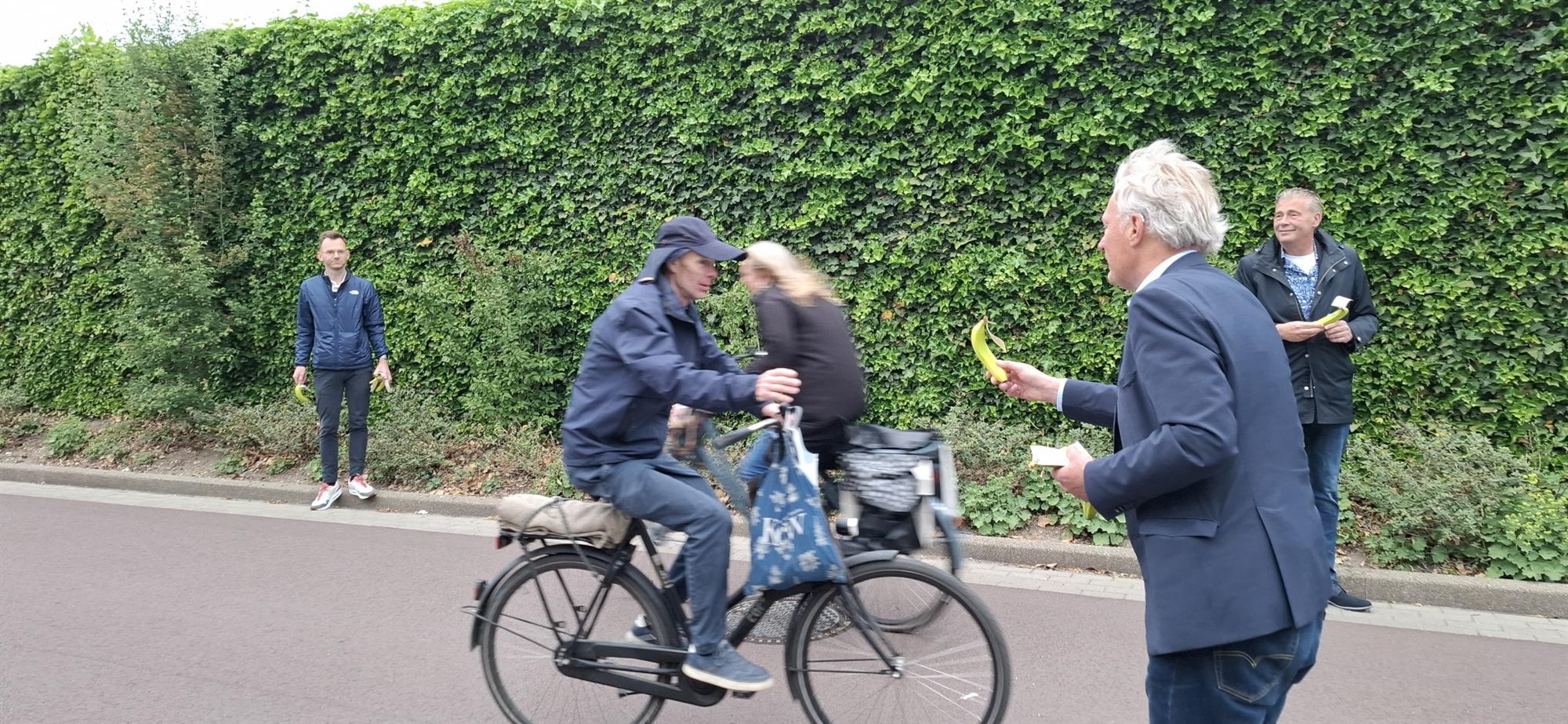 Op donderdag 15 mei vond de jaarlijkse Fiets naar je Werk Dag plaats, een belangrijk initiatief dat zowel gezondheid als milieuvriendelijk vervoer bevordert. Voor de gemeente Krimpen aan den IJssel was dit een uitstekende kans om fietsers in het zonnetje te zetten. Al vroeg in de ochtend, om 07:30 uur, deelden wethouders Wubbo Tempel (duurzaamheid) en John Janson (verkeer) aan de Rotterdamseweg bananen uit aan fietsers die onderweg waren naar de Algerabrug. Aan de banaan hing een bedankkaartje met de tekst 'Gaan met die banaan! Groen bezig! Doordat jij de fiets pakt bespaar je Krimpen een hoop files en uitlaatgassen. Daarom een bedankje voor jou. Ga zo door!