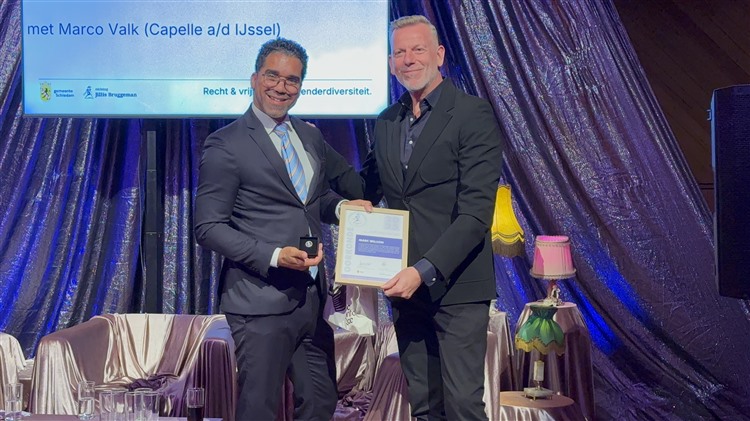 Capelle aan den IJssel, 28 mei 2025 – Zaterdag 24 mei werd in Theater aan de Schie in Schiedam de Jillis Bruggeman Penning uitgereikt. Naast de landelijke penning werden er ook drie Jillis Bruggeman Opstekers uitgereikt. Een daarvan was voor wethouder Marc Wilson voor zijn inzet voor acceptatie en zichtbaarheid van de LHBTIQA+ gemeenschap.