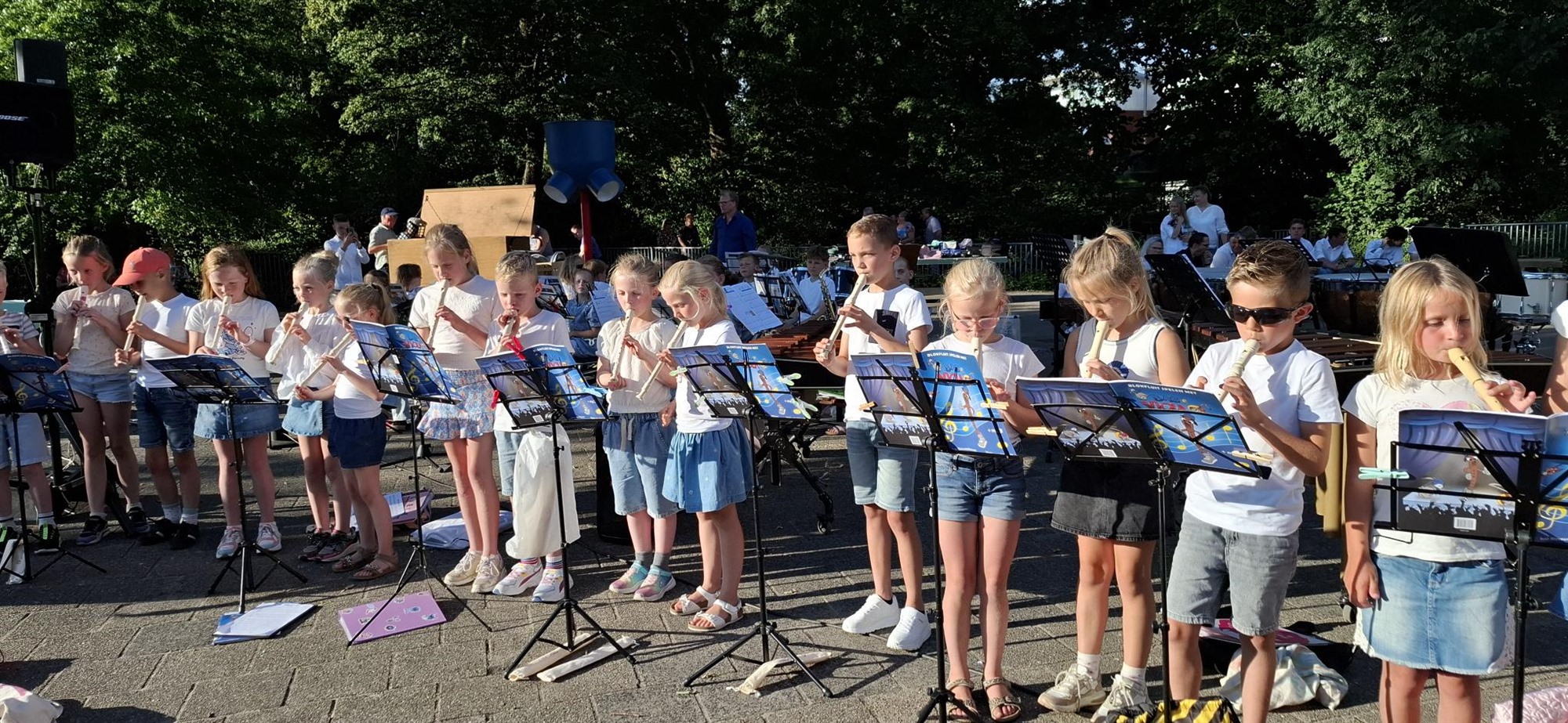 Op vrijdagavond 11 juli organiseerde Muziekvereniging Lekkerkerk het Zomeravond Buurtconcert op het schoolplein van de Wilhelminaschool. De avond begon met een geweldig optreden van het G-Orkest, dat volledig bestaat uit muzikanten met een verstandelijke beperking. Vervolgens was het de beurt aan het AMV-orkest, waarin kinderen hun muzikale vaardigheden op de blokfluit toonden. Daarna trad het Futura-leerlingen-orkest op en lieten het publiek kennismaken met hun talent en enthousiasme. Als afsluiting van hun optreden was er een gezamenlijk optreden met de Melody & Percussion Band, wat zorgde voor een indrukwekkende afsluiting van hun bijdrage aan het concert.
