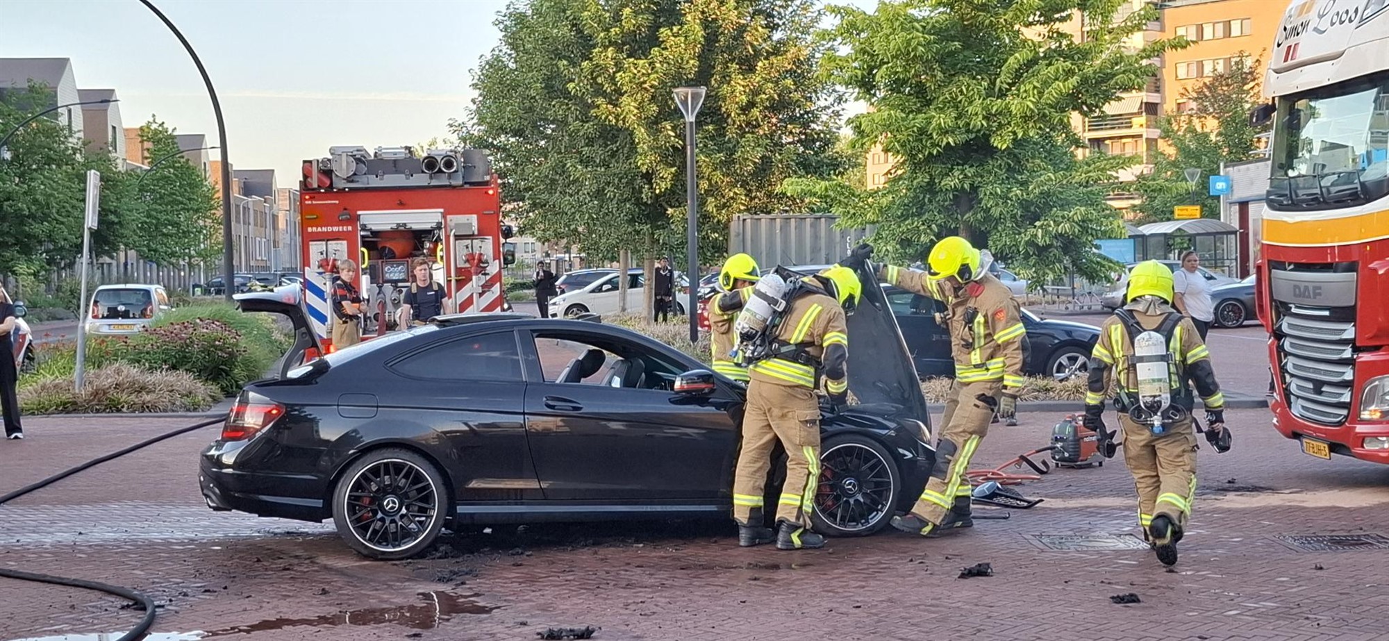 Rijdende auto vliegt in brand op de Fluiterlaan in Capelle aan den IJssel