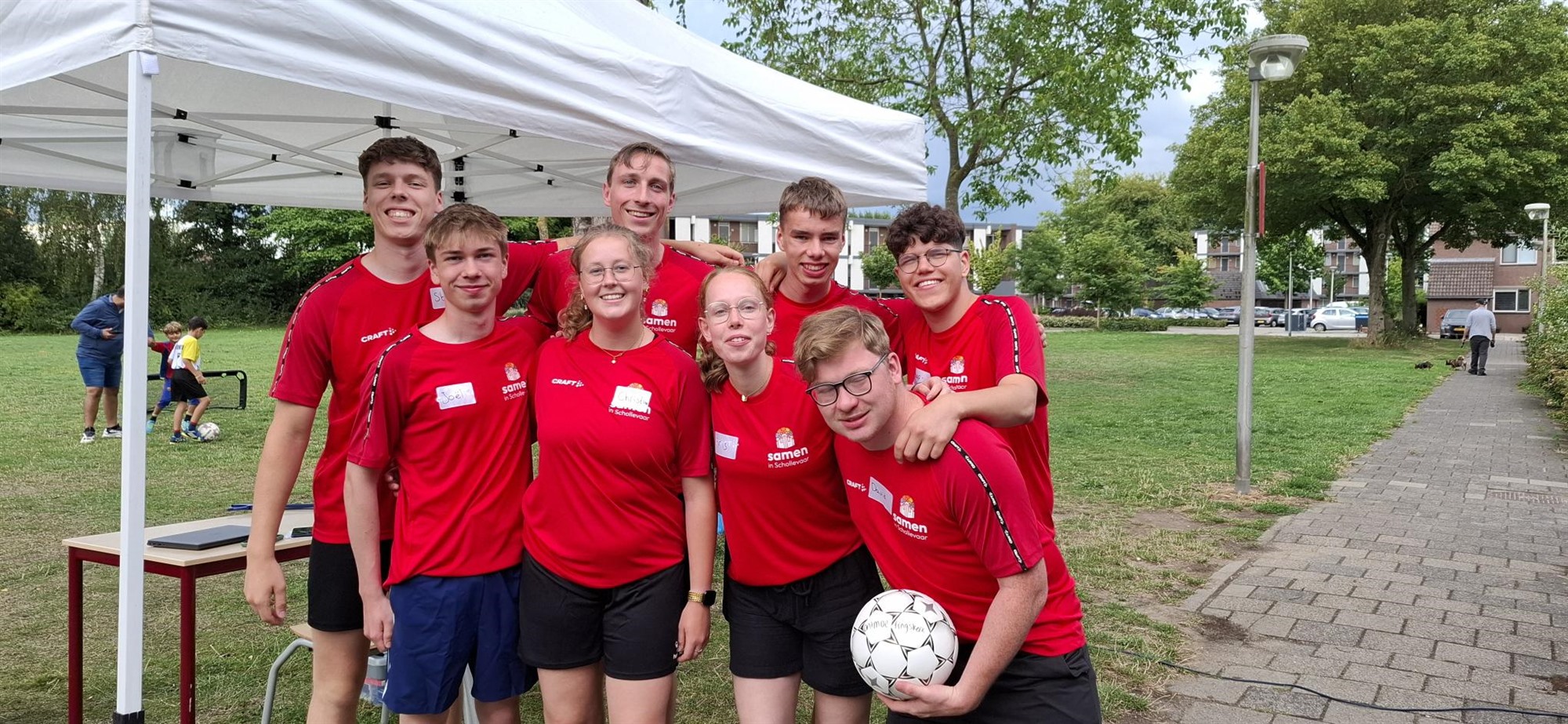 Het enthousiaste vrijwilligersteam van sportliefhebbers uit de Ontmoetingskerk zet zich deze week met volle energie in om de jeugd een onvergetelijke vakantieweek te bezorgen. Onder het motto 'Samen in Schollevaar' creëren zij elke dag opnieuw een geweldige ervaring vol plezier en samenzijn.