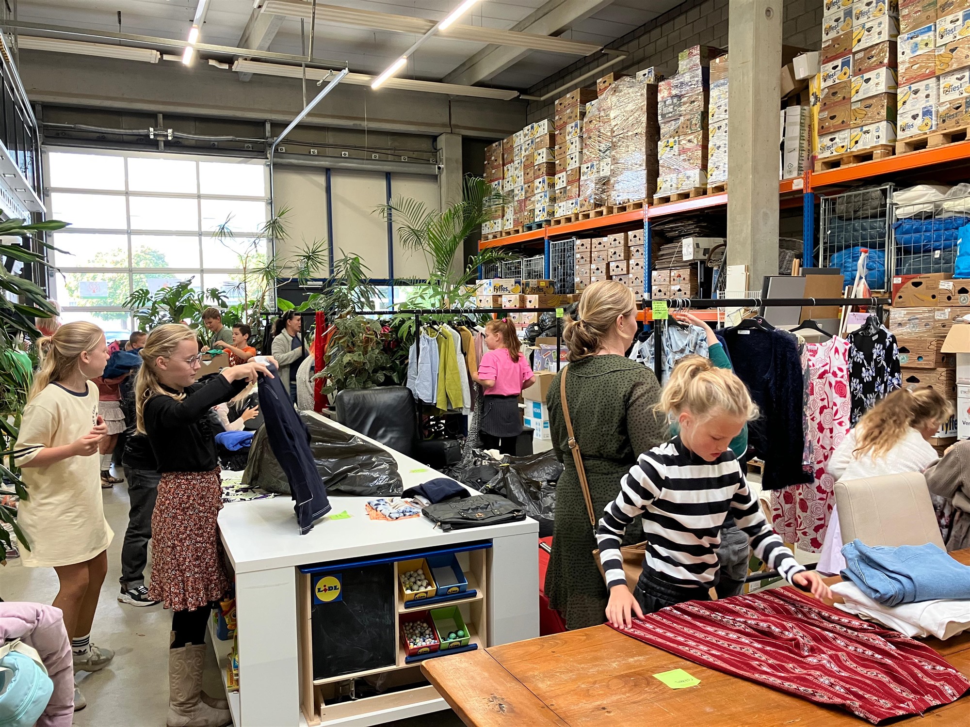 De leerlingen kregen eerst een rondleiding in de weggeefwinkel op de Stormpolder en gingen daarna aan de slag met het sorteren van ingezamelde spullen.