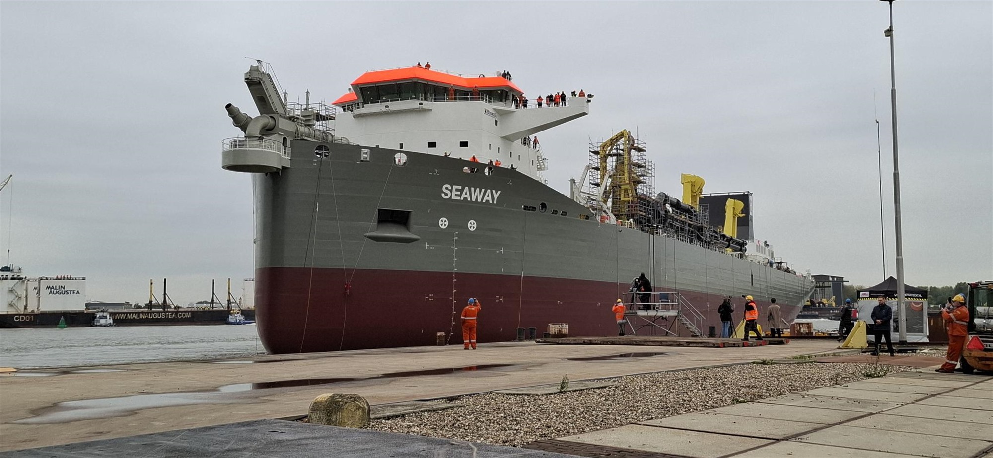 Op vrijdag 3 oktober vond bij scheepsbouwer Royal IHC in Krimpen aan den IJssel de onthulling plaats van de Seaway, een van de grootste sleephopperzuigers ter wereld. Het indrukwekkende schip heeft een lengte van 185,8 meter, een breedte van 38 meter en een hoppercapaciteit van maar liefst 31.000 kubieke meter. Tijdens een druk-bezochte ceremonie in de scheepshal werd de Seaway officieel gepresenteerd. Na het Wilhelmus, uitgevoerd door muziekvereniging Concordia, volgde de traditionele doopceremonie, waarbij een fles champagne tegen de romp gebroken, waarna de ondersteunende blokken werden verwijderd en het schip van de helling gleed om het water van de Hollandse IJssel in te gaan. Langs de kade konden de vele toeschouwers via een groot scherm live de ceremonie volgen en zien hoe het imposante schip zijn plek in het water vond.