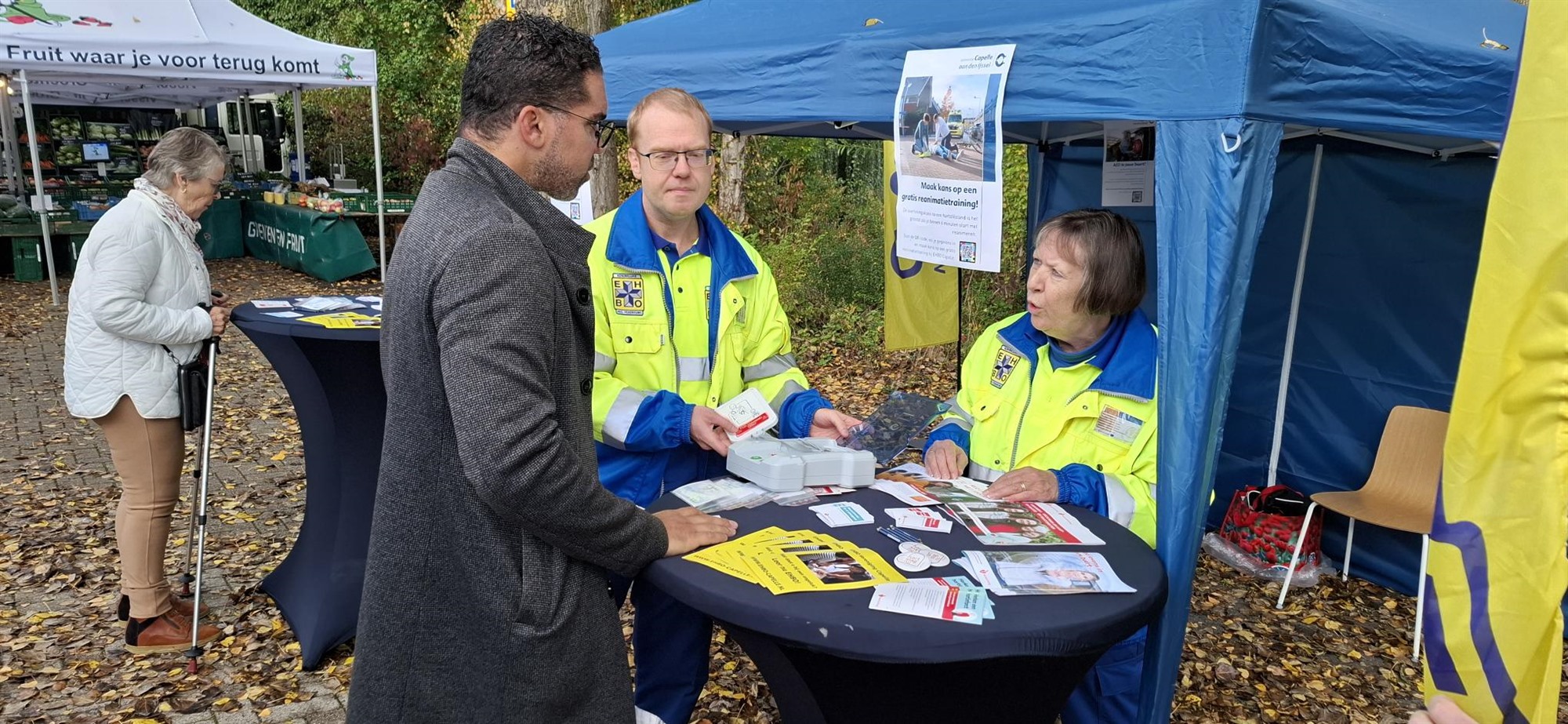 Sinds 1 oktober is het mogelijk om in Capelle aan den IJssel bij de gemeente subsidie aan te vragen voor het plaatsen en het onderhouden van een Automatische Externe Defibrillator (AED) voor openbare ruimtes. Om dit initiatief onder de aandacht te brengen, was de EHBO-vereniging Capelle op donderdag 16 oktober aanwezig op de weekmarkt. Bezoekers konden daar niet alleen informatie krijgen over reanimatiecursussen, maar ook verschillende AED-apparaten bekijken. Daarnaast was het mogelijk om ter plekke in te schrijven voor een reanimatiecursus.Bovendien werden eronder degenen die zich hadden ingeschreven maar liefst 30 gratis reanimatietrainingen verloot. De officiële aftrap van deze belangrijke campagne werd verzorgd door wethouder Marc Wilson. Hij ontving daarbij een uitleg over het gebruik en de betekenis van een AED. Met deze subsidieregeling wil de gemeente niet alleen het aantal beschikbare AED’s in de gemeente aanzienlijk vergroten, maar ook haar inwoners stimuleren om een reanimatiecursus te volgen. Op deze manier wordt de kans vergroot dat meer mensen adequaat kunnen handelen bij een hartstilstand, wat levens kan redden.