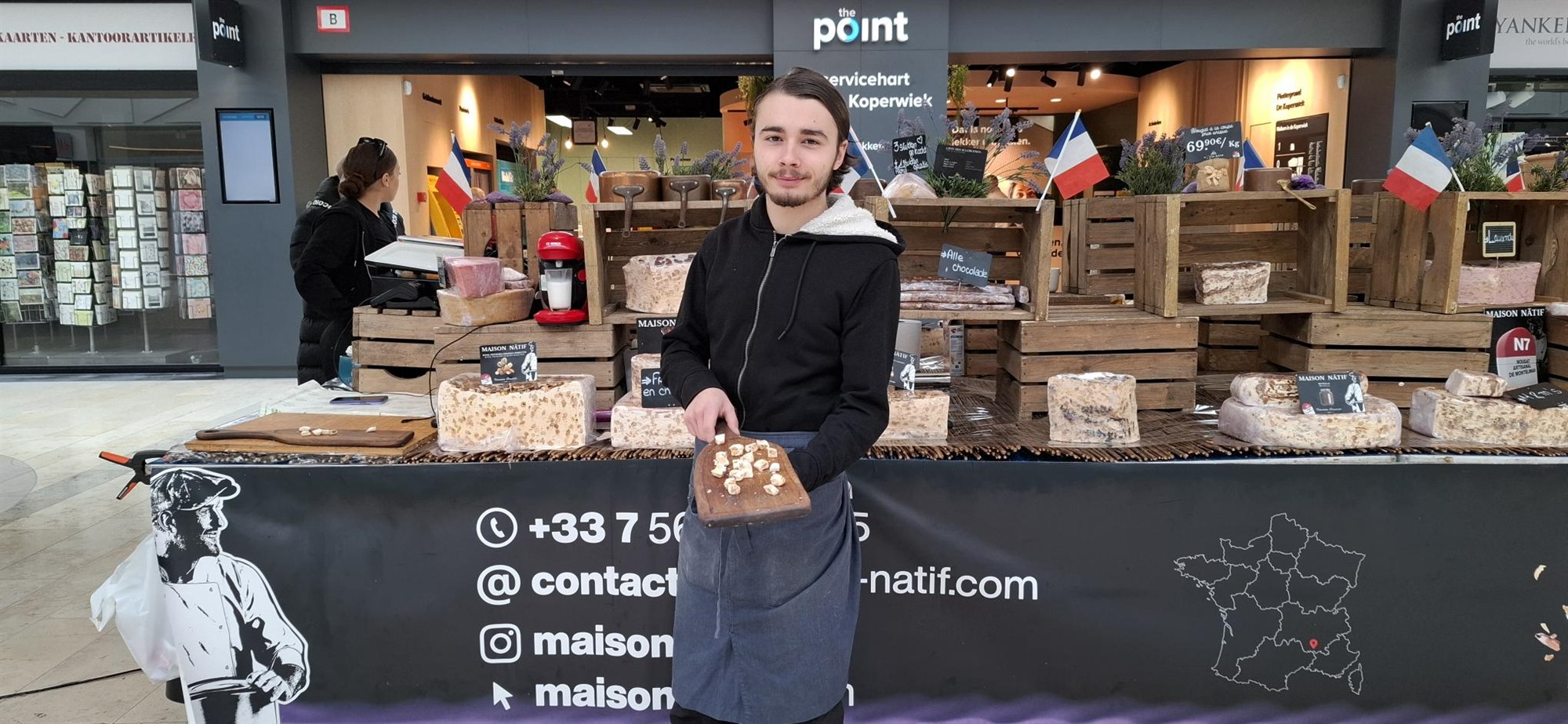 Bezoekers die op zondag 19 oktober een bezoek brachten aan het winkelcentrum De Koperwiek, kregen de kans om bij de stand van Maison Natif, ter hoogte van de Point, een bijzondere ervaring op te doen. Hier werden verschillende soorten ambachtelijke Franse nougat uit Montélimar gepresenteerd, een lekkernij met een rijke traditie en verfijnde smaak. Voorbijgangers werden uitgenodigd om een stukje van deze heerlijke nougat te proeven, in de hoop hen te verleiden om deze zoete traktatie mee naar huis te nemen en er nog langer van te genieten. Het proefmoment bood niet alleen een kennismaking met de smaakvolle delicatessen, maar gaf ook een vleugje Franse sfeer aan iedereen die langsliep.