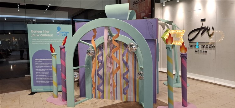Levensgroot cadeau in winkelcentrum De Koperwiek voor donaties aan Stichting Jarige Job.