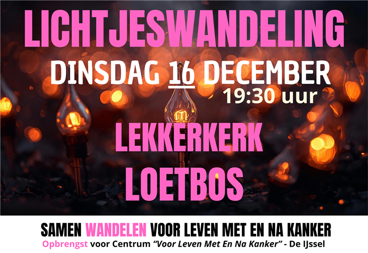 Op dinsdagavond 16 december organiseert VitaMotionNow, in samenwerking met Ondersteuningscentrum De IJssel, Centrum Voor Leven Met En Na Kanker, de lichtjeswandeling in het Loetbos.