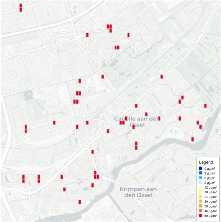 De meetgegevens laten zien dat het effect van vuurwerk op de luchtkwaliteit al vroeg in de avond zichtbaar werd. Vanaf 18.00 uur liepen de PM2.5-waarden geleidelijk op. De hoogste piek werd rond 00.00 uur bereikt. Op alle sensoren, verspreid over Capelle aan den IJssel, werd op dat moment een concentratie van meer dan 60 microgram per kubieke meter gemeten.