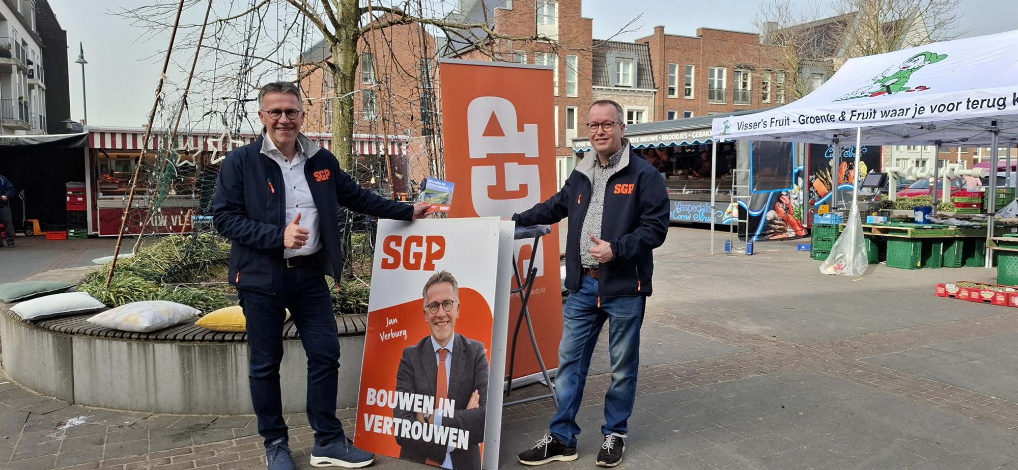 SGP Krimpenerwaard voert campagne op de weekmarkt in Krimpen aan den Lek