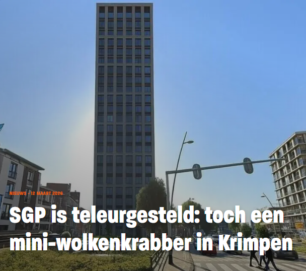 KRIMPEN A/D IJSSEL – De SGP-fractie is teleurgesteld dat de gemeenteraad heeft ingestemd met een mini-wolkenkrabber van 18 tot 23 verdiepingen in ons dorp. De SGP stemde tegen het voorstel, maar een meerderheid van de raad ging toch akkoord.