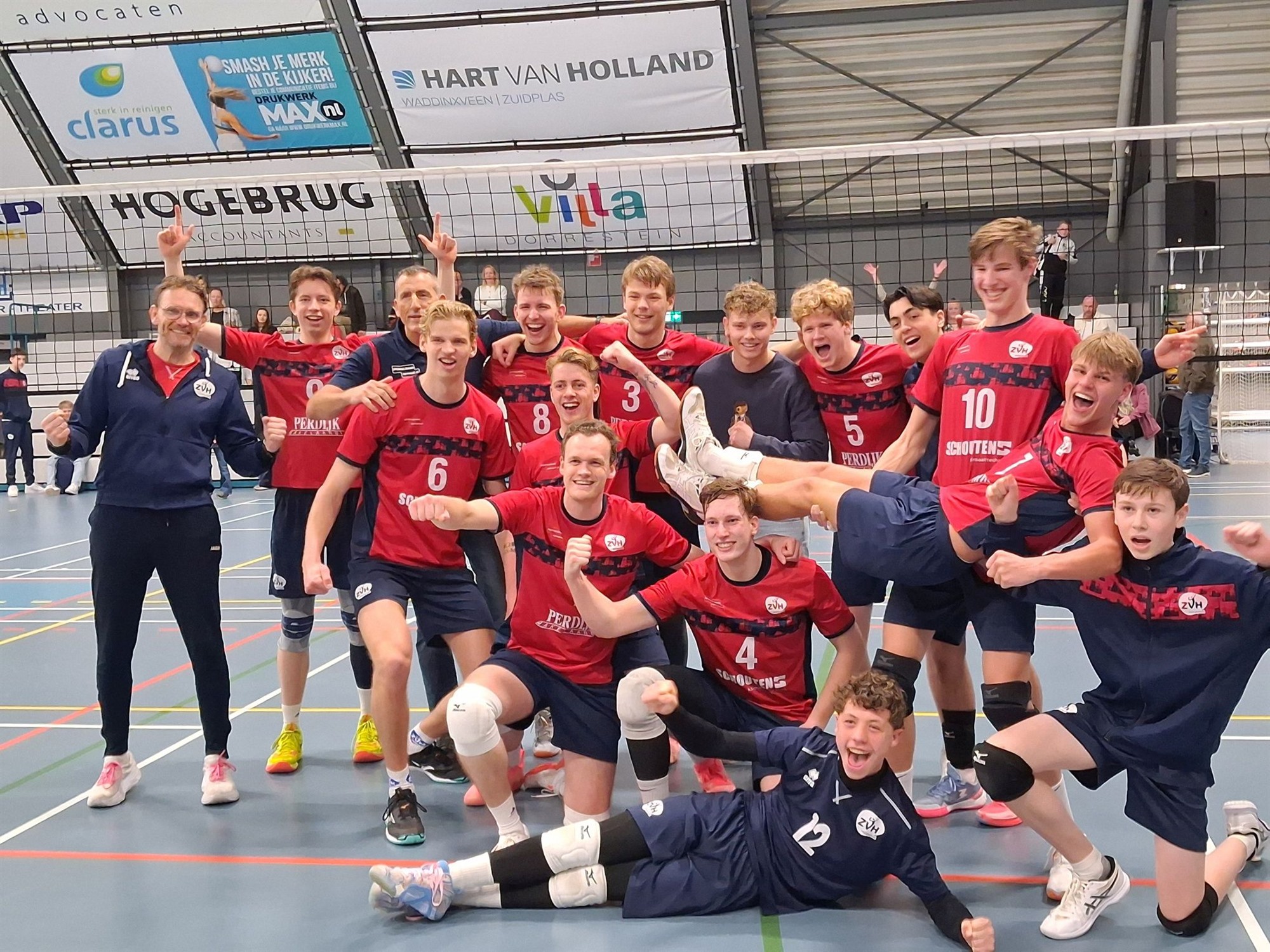 Trainer/coach Ed Bontrop met assistent Giedo Stolk kon niet beschikken over de volledige selectie. Marc Prosman was niet inzetbaar vanwege een knieblessure en Jake Anfiloff was ingelijfd door het eerste herenteam. Een aantal jeugdspelers waren aanwezig. De volgende basis kwam binnen de lijnen: Julian Perdijk, Ries Visser, Emanuel van Rangelrooij, Elwin Oskam, Luca van Hal, Jens Everaart en libero Kyan Merkus.