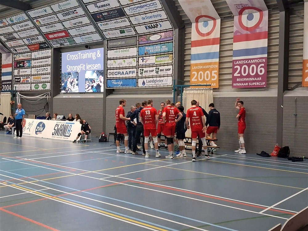Hoofdcoach Kristian van der Wel met assistent Rodin Merx trad aan met een selectie uitgebreid met jeugdspelers. De volgende opstelling werd het veld ingestuurd: Roland Rademaker, Jesper van Muijden, Yoran Koezema, Luuk Steenbergen, Bram van der Wel, Jake Anfiloff en libero Richard Rademaker.
