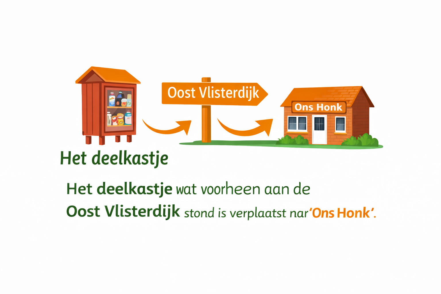 Het deelkastje wat voorheen aan de Oost Vlisterdijk stond is verplaatst naar Ons Honk