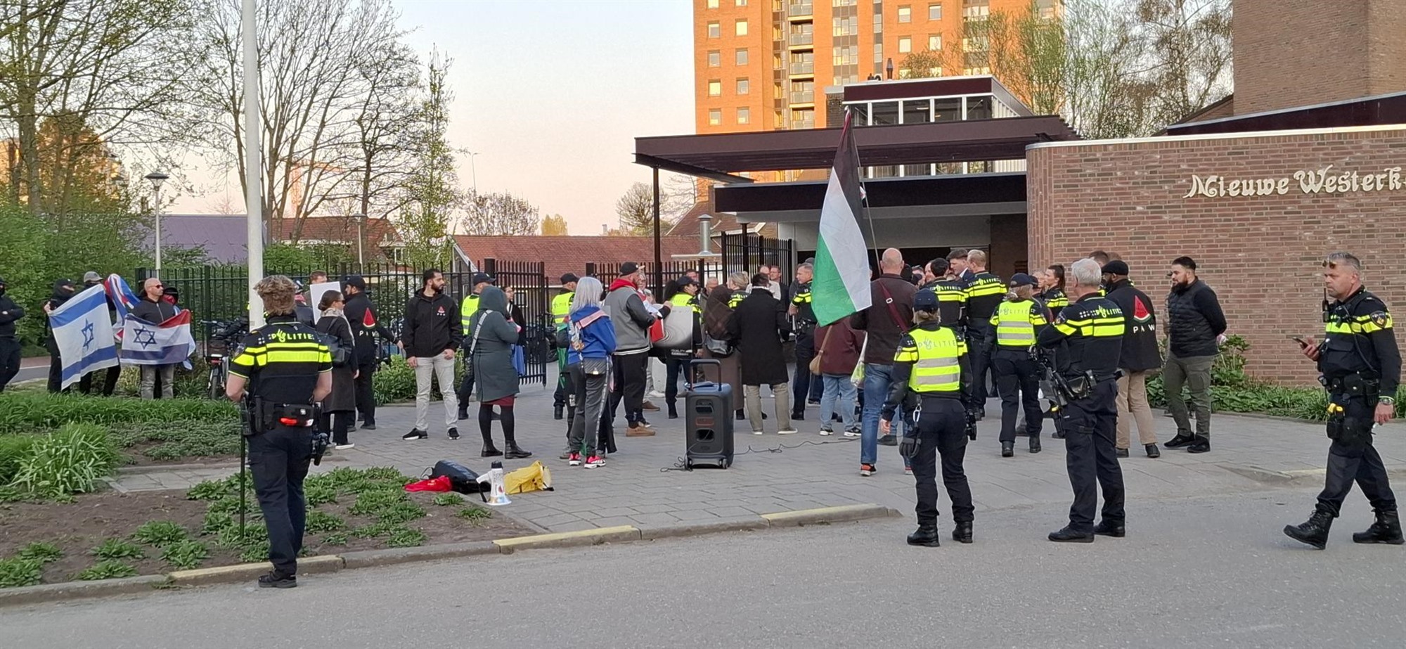 Op dinsdagavond 14 april om 19:30 vond bij de Nieuwe Westerkerk aan het Valeriusrondeel een pro-Palestina-protest plaats. Met Palestijnse vlaggen en krachtige leuzen uitten de demonstranten hun ongenoegen over het gebruik van de kerk als locatie voor een studiebijeenkomst van dominee Oscar Lohuis, georganiseerd door de organisatie Christenen voor Israël. Het protest trok extra aandacht door de aanwezigheid van tegenbetogers, die herkenbaar waren aan hun Israëlische vlaggen. Om escalaties te voorkomen, was er een grote politiemacht aanwezig om de orde te handhaven.
