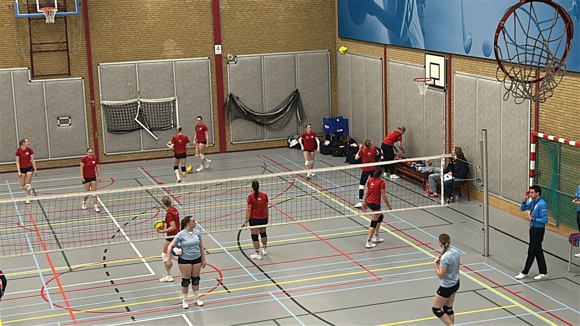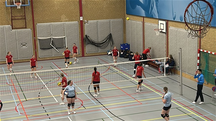 Trainer/coach Lesley Remerink geassisteerd door Julia Zwinkels, mede door de geblesseerde Hannah Slings bracht de volgende opstelling in het veld: Marlies Nobel als spelverdeler, diagonaal Izzy van Spengen, aan de buitenkant Luca Hessing en Vera Bruggeman en op het midden Tara van Zijl en Eden Wensveen en de libero’s Dorothée Kamerman en Femke Huizenga.