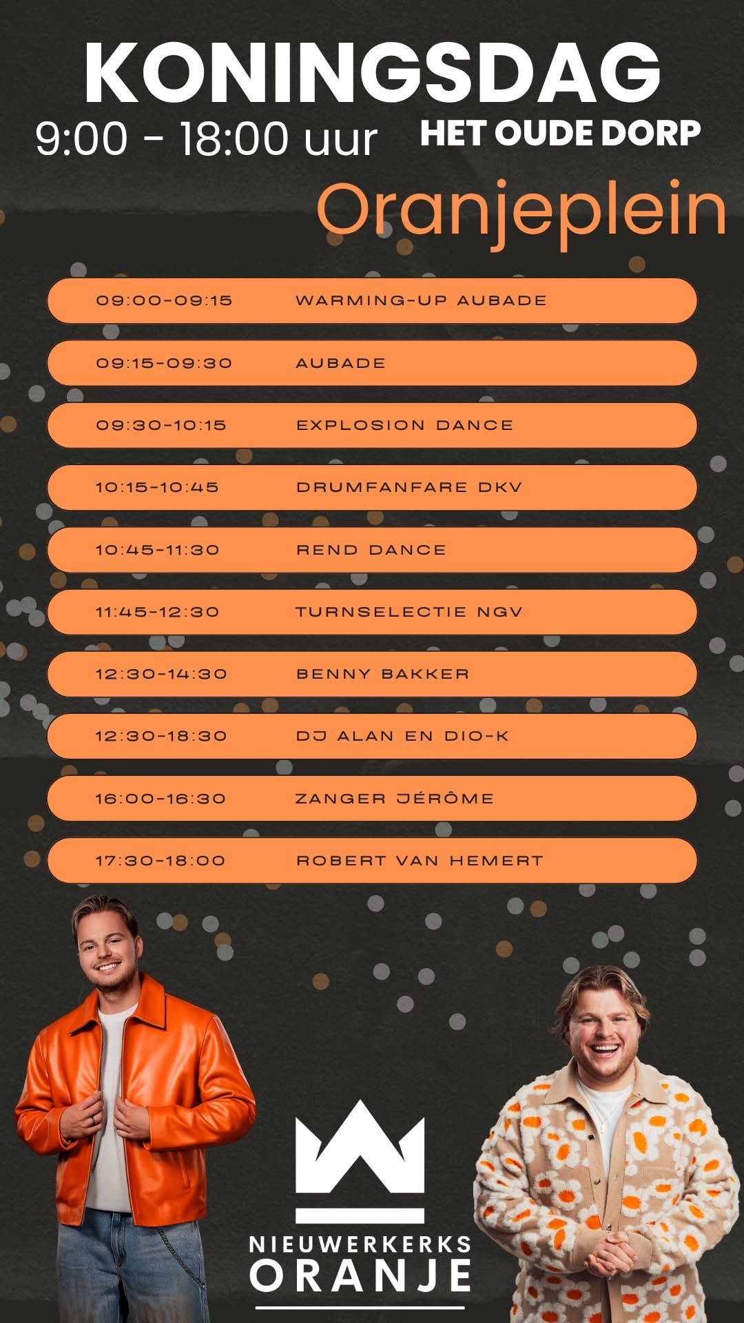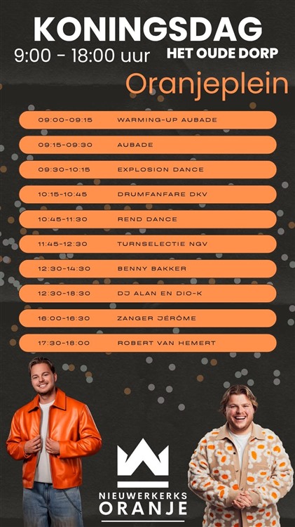 Stichting Nieuwerkerks Oranje presenteert het programma voor het Nieuwerkerks Oranjeplein!