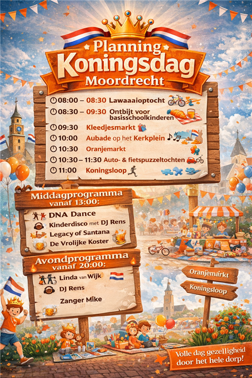 “Koningsdag in Moordrecht is echt een dag vóór en dóór het dorp,” aldus de organisatie. “We kijken ernaar uit om er samen weer een geweldige dag van te maken.”